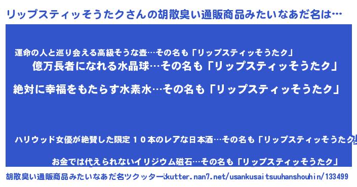 | 意味不明あだ名 | 『永久保存リップスティッそうたク』 |
