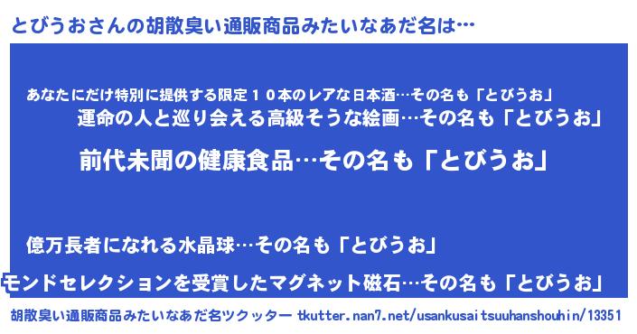 | ヒーロー風カッコイイあだ名 | 『ネオトビウオ』『仮面トビダー』 |