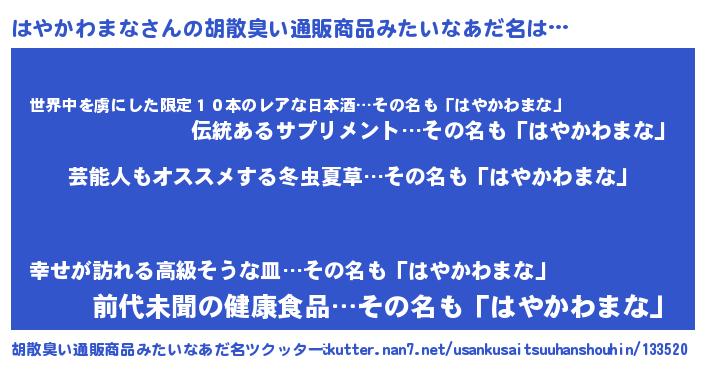| 意味不明あだ名 | 『自称はやかわまな』 |