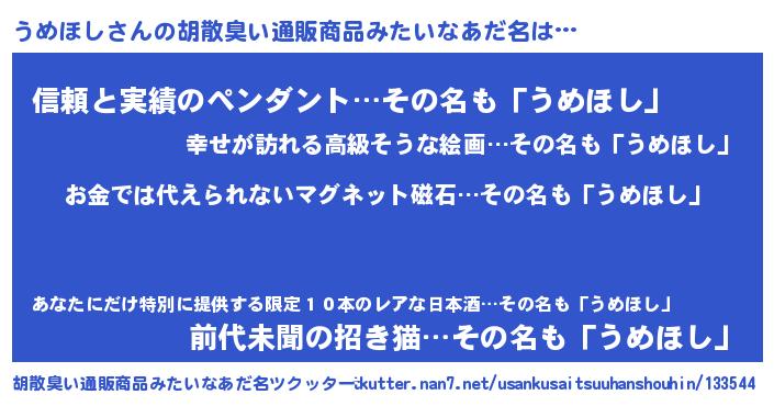 | ヒーロー風カッコイイあだ名 | 『愛の使者うめほし』『暗黒騎士ウメ』 |