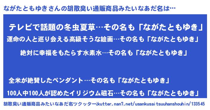 | 意味不明あだ名 | 『永久保存ながたともゆき』 |
