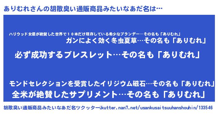 | 男性向けラノベタイトル風あだ名 | 『ありむれの憂鬱』『魔弾の王とありむれ』 |