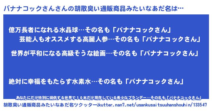 | ファンタジー風あだ名 | 『エターナルバナナコックサンー』 |