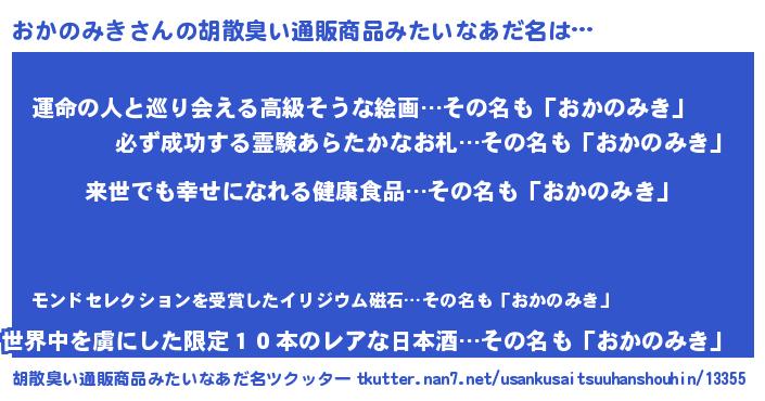 | 意味不明あだ名 | 『永久保存おかのみき』 |
