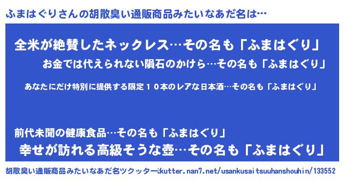 | 意味不明あだ名 | 『住所不定無職ふまはぐり(59歳)』 |