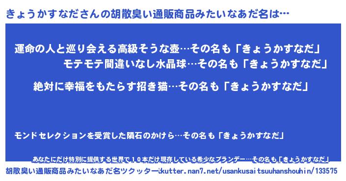 | ヒーロー風カッコイイあだ名 | 『ネオキョウカスナダ』『仮面キョダー』 |