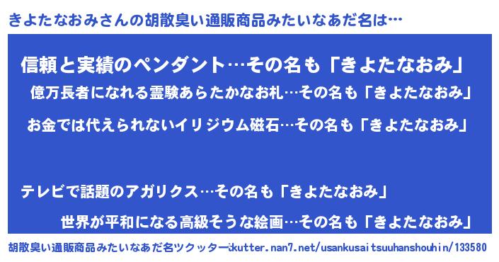 | 女子向けラノベタイトル風あだ名 | 『きよたなおみ恋絵巻』 |