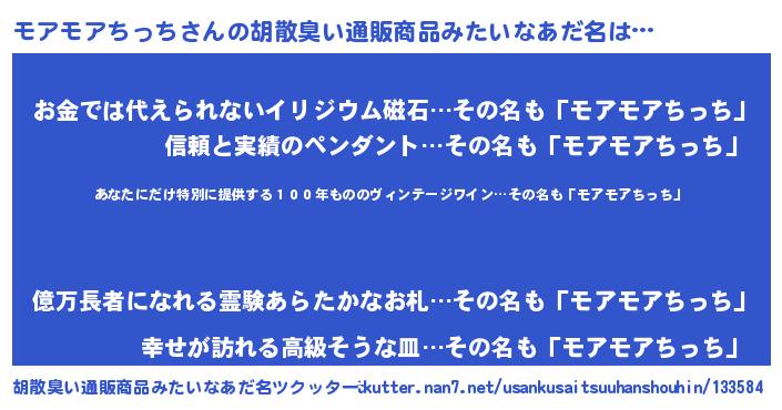 | 意味不明あだ名 | 『住所不定無職モアモアちっち(12歳)』 |