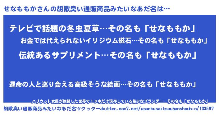 | 伝説のあだ名 | 『解き放たれた魔法使いせなももか』 |