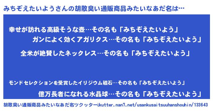| 意味不明あだ名 | 『とにかく怪しいみちぞえたいよう』 |