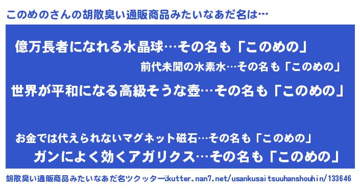 このめのさんの胡散臭い通販商品みたいなあだ名をツクッター!