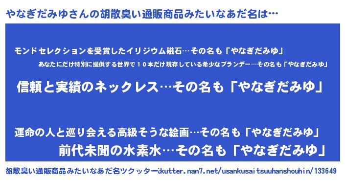| 意味不明あだ名 | 『とにかく怪しいやなぎだみゆ』 |