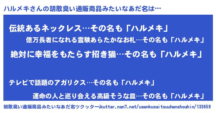 | 意味不明あだ名 | 『永久保存ハルメキ』『ペロリンハルメキ』 |