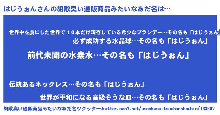 | 意味不明あだ名 | 『永久保存はじうぉん』 |