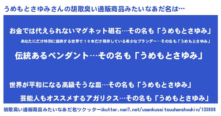 | 意味不明あだ名 | 『とにかく怪しいうめもとさゆみ』 |
