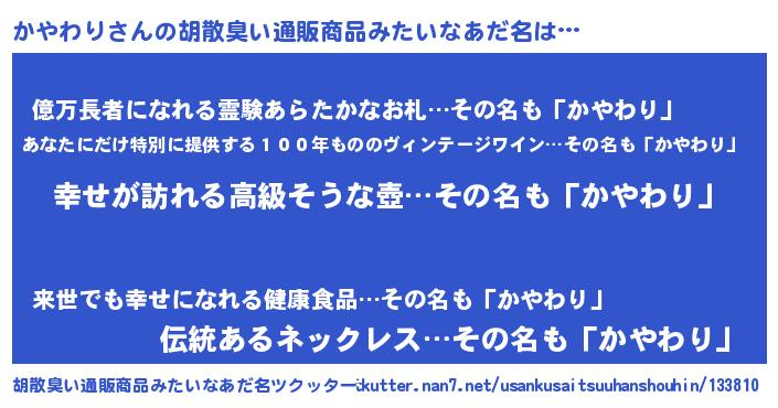 | ヘコむあだ名 | 『牛乳』『かやにー』『かやお』 |