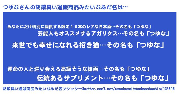| 意味不明あだ名 | 『永久保存つゆな』『自称つゆな』 |