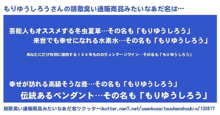 | ヘコむあだ名 | 『もりお』『もりゆうしろう(震え声)』 |