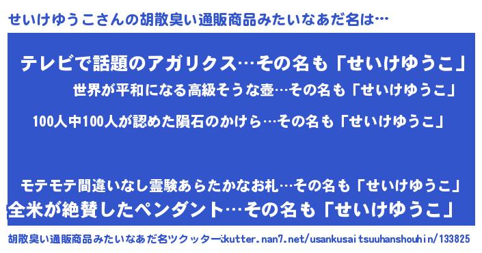 | ヘコむあだ名 | 『せいっちょ』『なまこ酢』 |