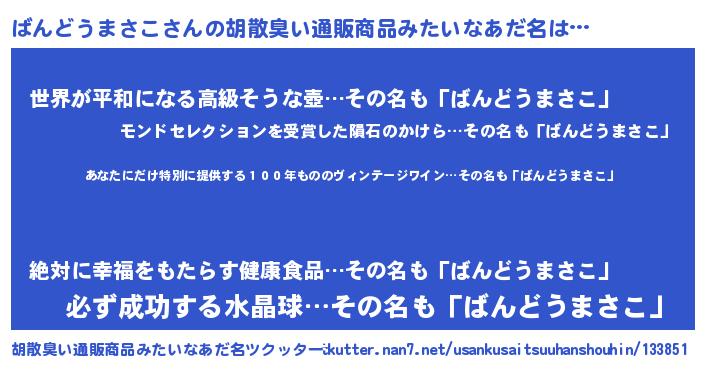 | 意味不明あだ名 | 『住所不定無職ばんどうまさこ(3歳)』 |