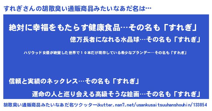 | 意味不明あだ名 | 『住所不定無職すれぎ(84歳)』 |