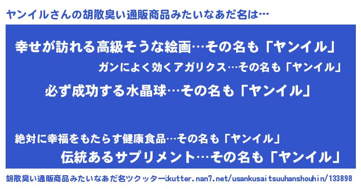 | 肩書あだ名 | 『ヤンイル店長』『ヤンイル総理大臣』 |