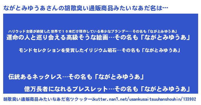 | 伝説のあだ名 | 『救世主となる占い師ながとみゆうあ』 |