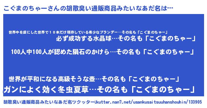 | ヘコむあだ名 | 『こぐっふぃ~』『なまこ酢』 |