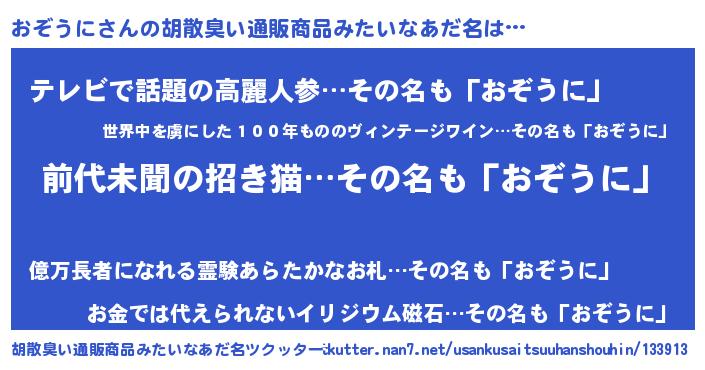| ヘコむあだ名 | 『おぞうに(笑)』『おぞふぇ~』 |