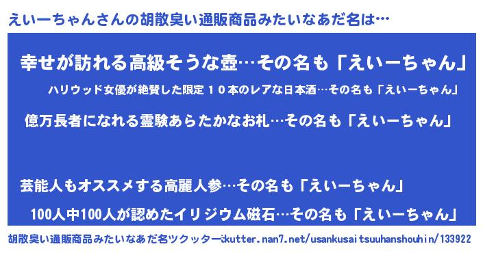 | 意味不明あだ名 | 『ペロリンえいーちゃん』 |