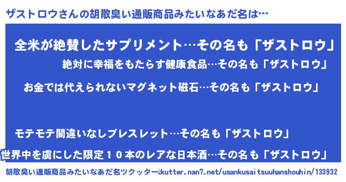 | 男性向けラノベタイトル風あだ名 | 『はたらくザストロウさま!』 |