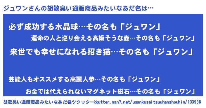 | 男性向けラノベタイトル風あだ名 | 『転生したらジュワンだった件』 |