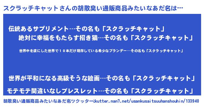 | 意味不明あだ名 | 『住所不定無職スクラッチキャット(85歳)』 |