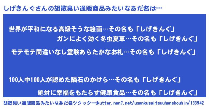 ヘコむあだ名 | 『しげもー』『豆乳』『しげっ子』 |