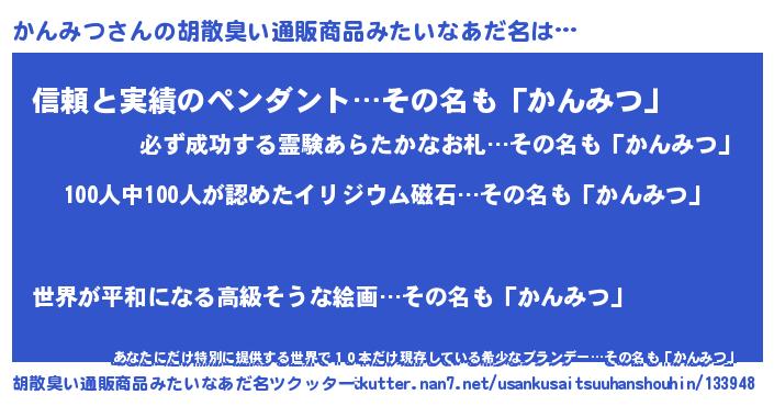 | 男性向けラノベタイトル風あだ名 | 『緋弾のカンミツ』『カンミツスレイヤー』 |