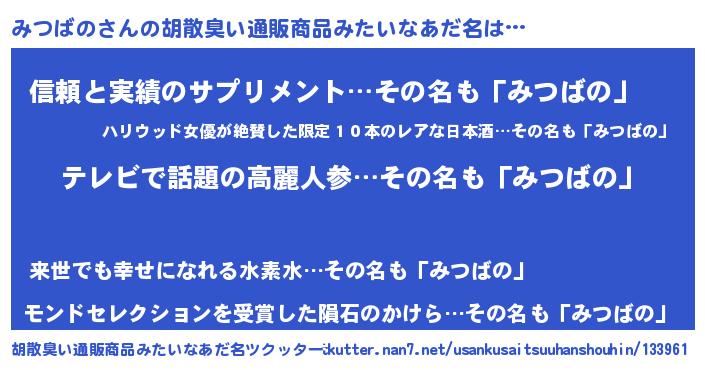 | ヘコむあだ名 | 『みつお』『みつばの(小並感)』 |