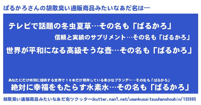 | 意味不明あだ名 | 『ばるかろフォーエバー』『自称ばるかろ』 |