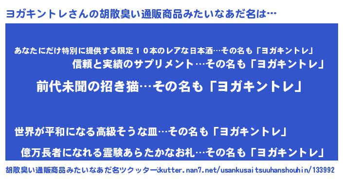 | 意味不明あだ名 | 『永久保存ヨガキントレ』 |