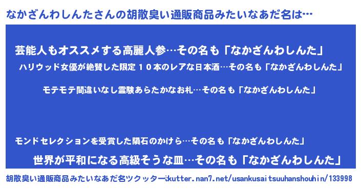 なかざんわしんたさんの胡散臭い通販商品みたいなあだ名をツクッター!