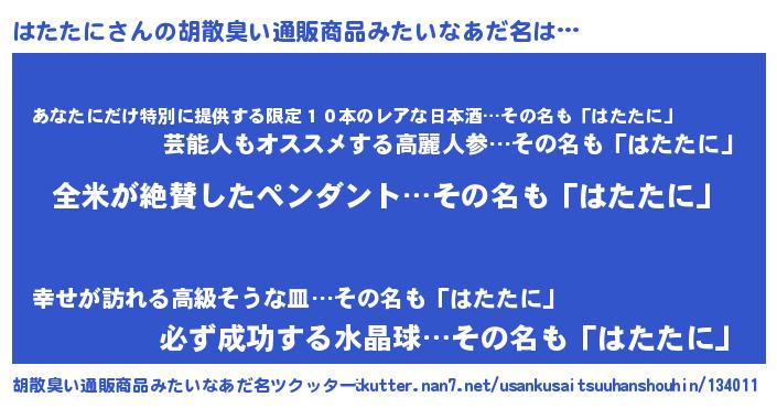 | 意味不明あだ名 | 『とにかく怪しいはたたに』 |