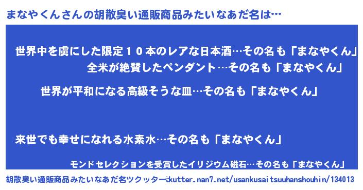 | ヘコむあだ名 | 『なまこ酢』『まな太郎』『まなもー』 |