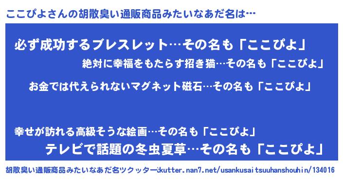 | ヘコむあだ名 | 『ここふぇ~』『ここぴよ(小並感)』 |
