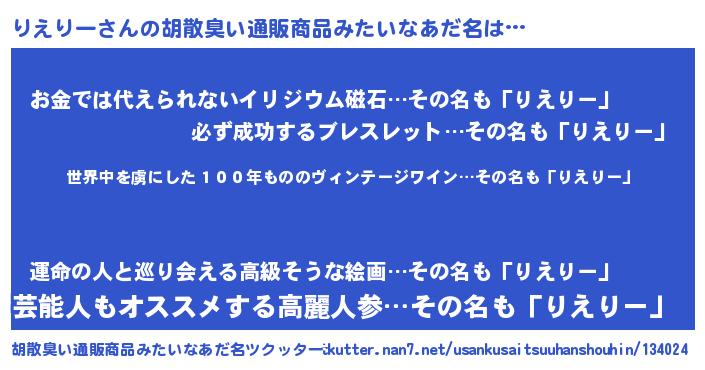 | ヒーロー風カッコイイあだ名 | 『仮面リエダー』『愛の使者りえりー』 |