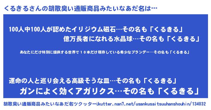 | 意味不明あだ名 | 『住所不定無職くるきる(85歳)』 |