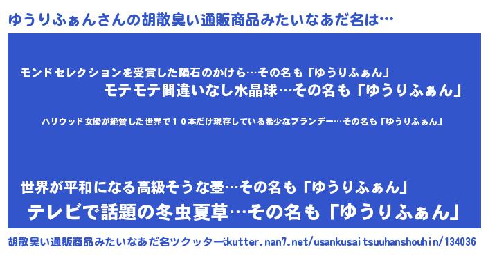 | 意味不明あだ名 | 『住所不定無職ゆうりふぁん(98歳)』 |