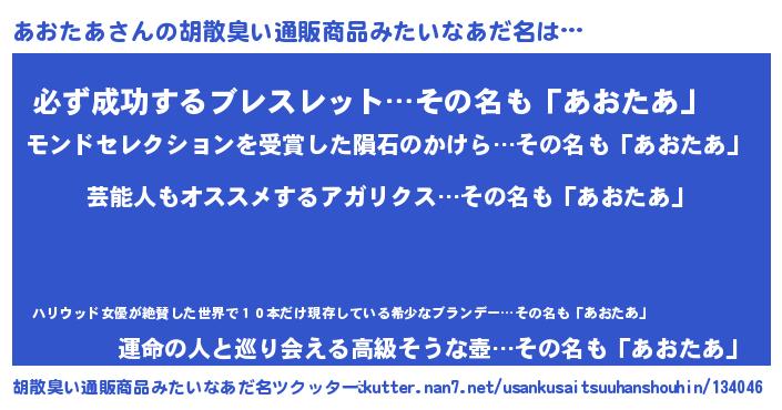 | 意味不明あだ名 | 『自称あおたあ』『ペロリンあおたあ』 |