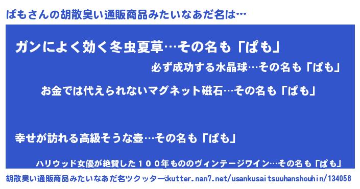 | ヒーロー風カッコイイあだ名 | 『慈愛の使者ぱも』『ウルトラ戦士パモ』 |