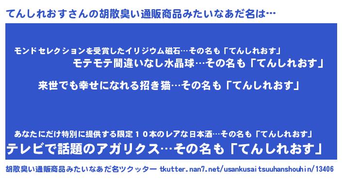 | ヘコむあだ名 | 『てんしれおす(笑)』『てんっふぃ~』 |