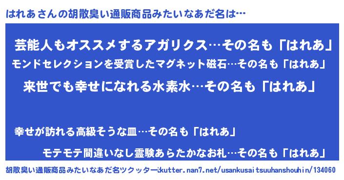| ヘコむあだ名 | 『はれあ(遠い目)』『はれっふぃ~』 |