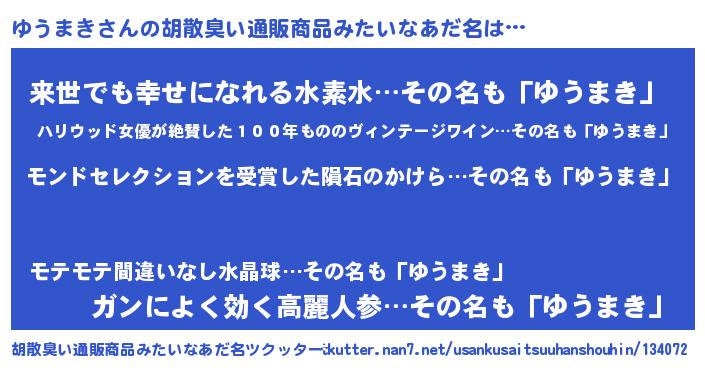 | ヒーロー風カッコイイあだ名 | 『慈愛の使者ゆうまき』『ネオユウマキ』 |